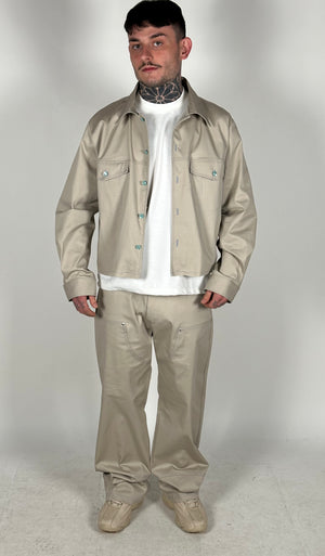 Bottoni in madreperla e impunture a contrasto per un look ricercato e moderno.