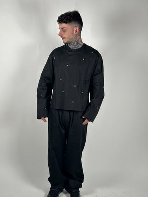 Eleganza e versatilità con collo Chanel e occhiello per borchie personalizzabili.