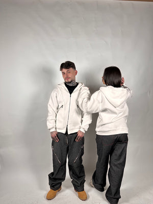 Tessuto felpato con cappuccio e dettagli cuciture inverse, zip con doppio cursore e tasche con chiusura zip