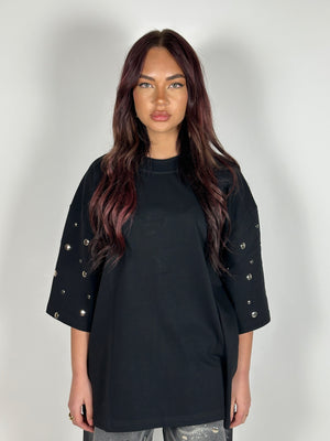 T-shirt in cotone con borchie sulle maniche.