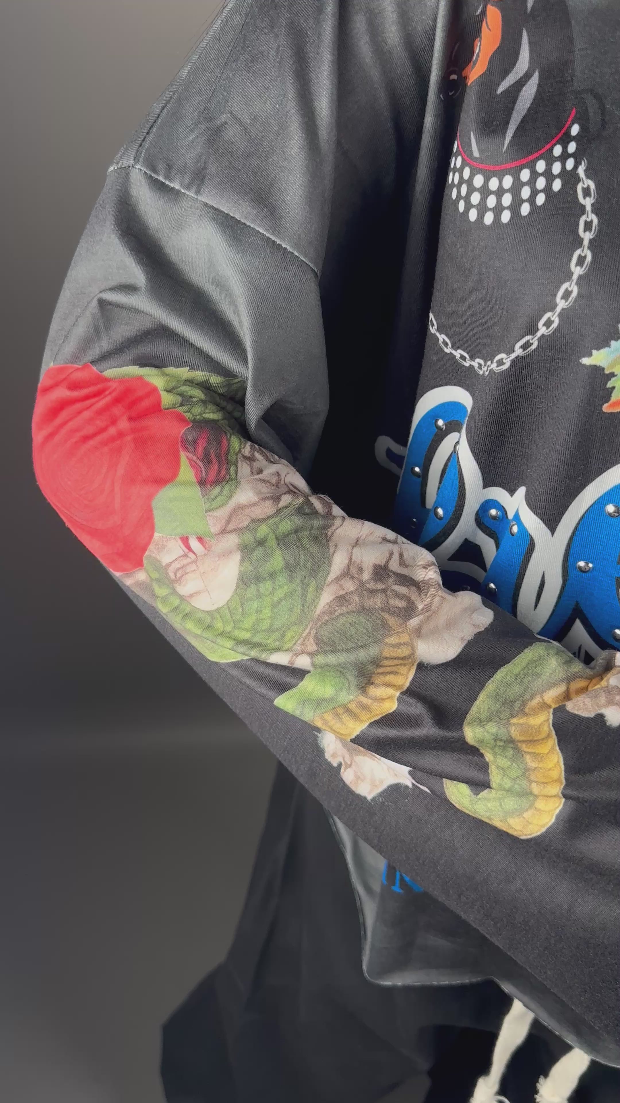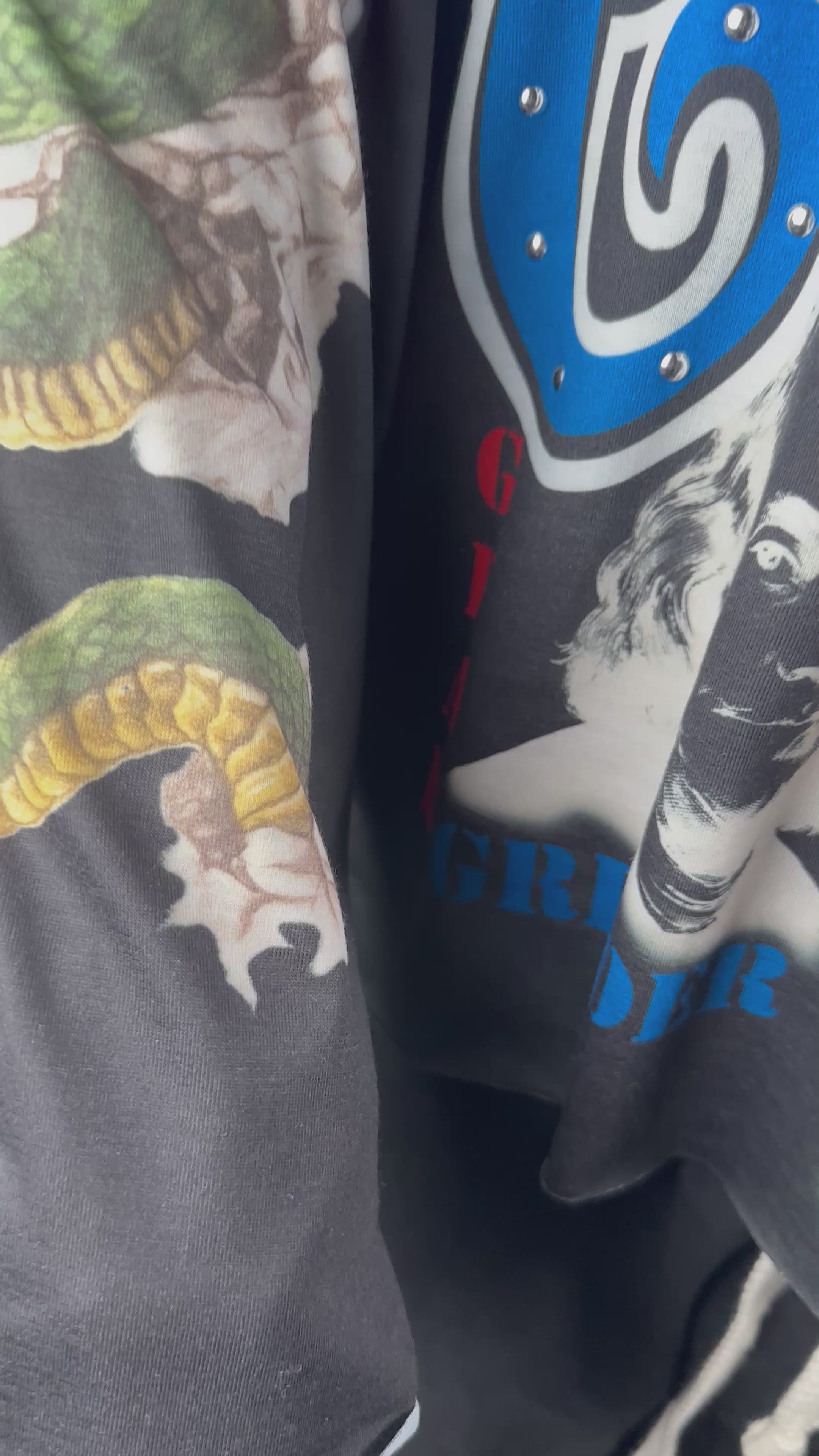 Maglia con manica a fondo ampio vestibilità crop con dettagli applicazioni borchie sul fronte.